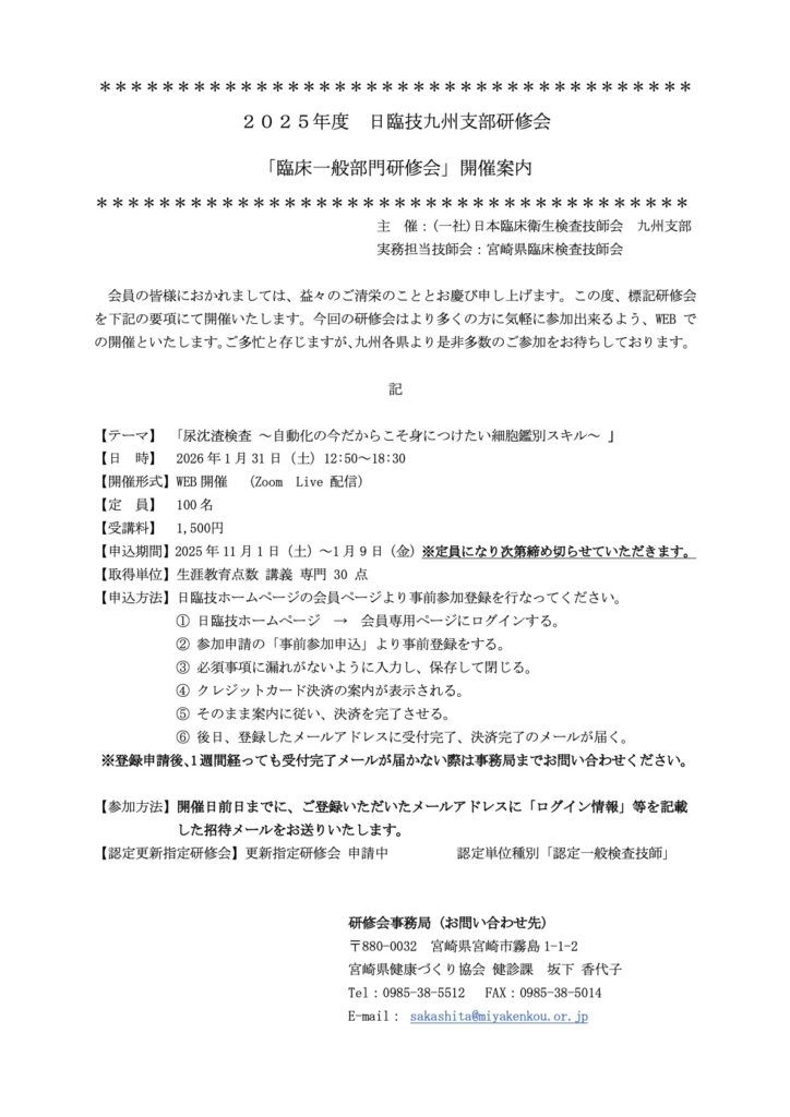 2025年度 日臨技九州支部 臨床一般研修会のご案内