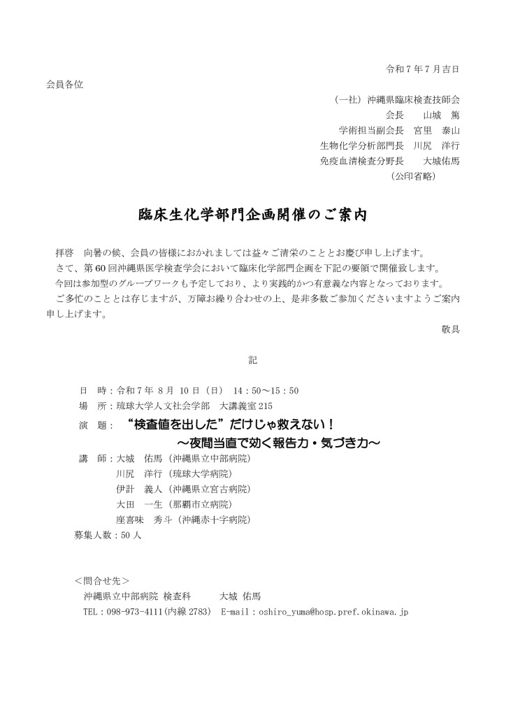 臨床生化学部門企画_案内文のサムネイル臨床生化学部門企画_掲載用データのサムネイル